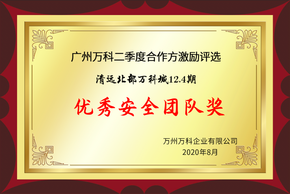 2020年荣获广州万科优秀安全团队奖(4期)